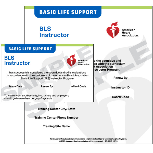 BLS Instructor cards are for those who successfully complete all requirements to become an AHA BLS Instructor.