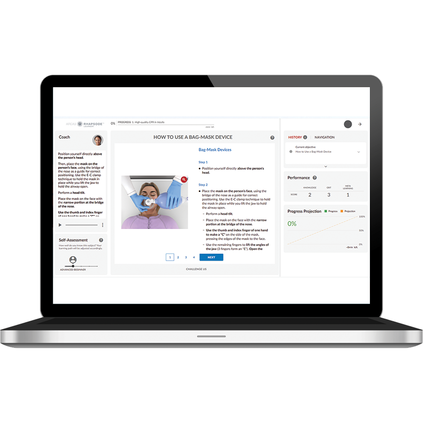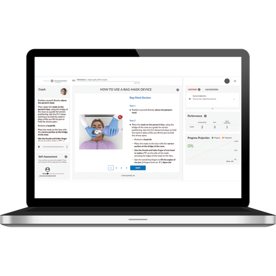 HeartCode® BLS Online is a self-directed, comprehensive eLearning program that uses adaptive learning technology to allow learners to acquire and demonstrate Basic Life Support skills using a personalized learning path that adapts in real time to a learner’s performance. The program is designed for healthcare professionals who need Basic Life Support training for their clinical duties. Utilizing a variety of eLearning assets such as dramatizations, Cognitive Assessment Activities, illustrations, knowledge checks and interactive activities, this program teaches BLS knowledge and skills. This method of learning provides training consistency and adaptability to different learning styles. Students can work at their own pace applying their knowledge to real-time decision making. Debriefings and coaching are provided immediately after each knowledge check and each Cognitive Assessment Activity. Students who successfully complete the cognitive portion and the hands-on session (skills) will receive an AHA BLS Provider course completion card (eCard), valid for two years.