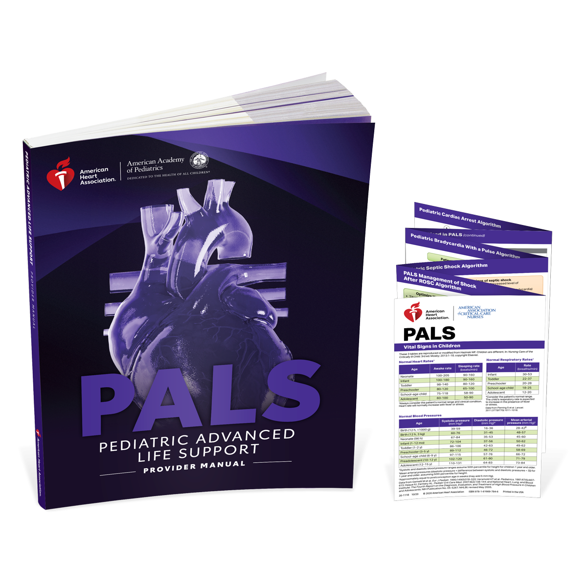 The AHA PALS Provider Manual contains all the information students need to successfully complete the AHA PALS Course. The PALS Provider Manual is for use by a single student and provides information needed before, during, and after class. This manual includes the PALS Reference Card, which is also sold separately (25-1118).
